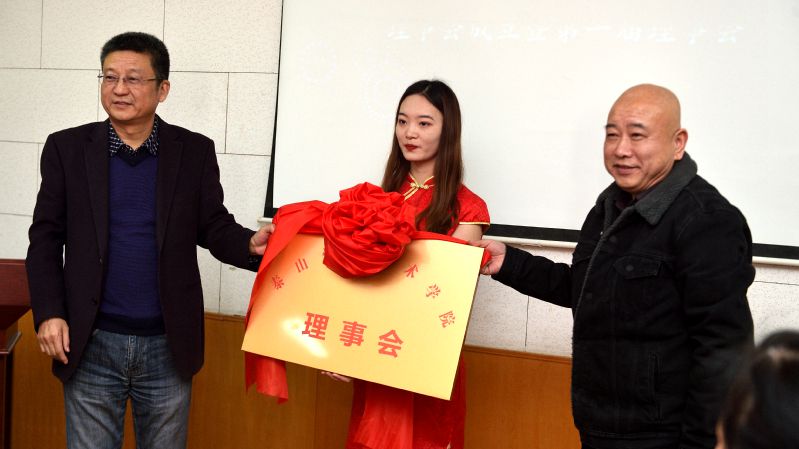 殷敏与新当选的理事长陈军共同为艺术学院理事会揭牌。理事长陈军和理事代表王晓惠分别讲话,对理事会下一步的建设与发展进行了规划与展望。