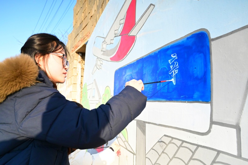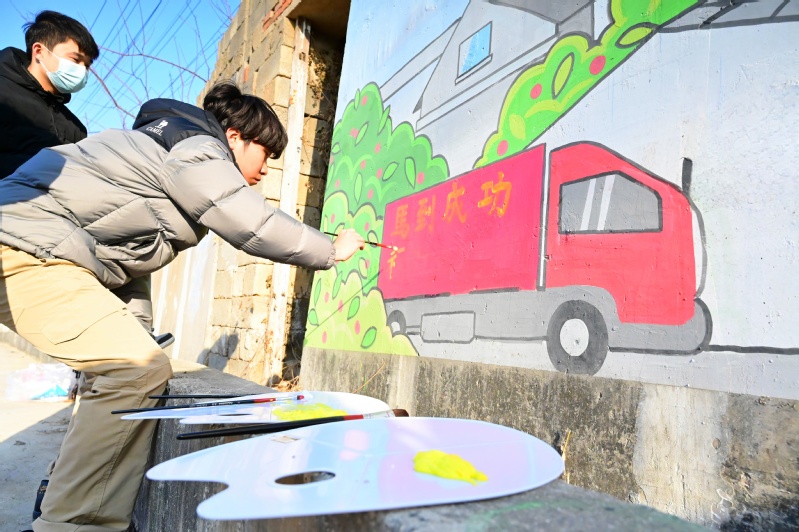 艺术学院师生:以新春墙绘,为乡村振兴添彩!