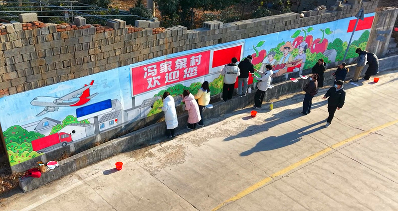 近日,艺术学院十余名师生来到冯家泉村,开展了一场别开生面的“新春墙绘”创作活动。他们用艺术装点乡村,为当地百姓送去别样的新年祝福。