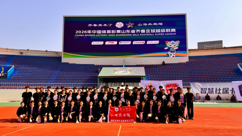 春风启幕,绿茵逐光。4月18日,2026山东省齐鲁足球超级联赛(齐鲁超赛)开幕式在泰安盛大启幕,艺术学院学子在张冉、武晓丽、于汇川老师的带队下,携原创舞蹈《大美山东》惊艳登场,以灵舞韵齐鲁,大美登场!艺术学院亮相2026齐鲁超赛开幕式以生动舞姿演绎齐鲁文脉,为这场全省体育盛宴献上文艺华章。